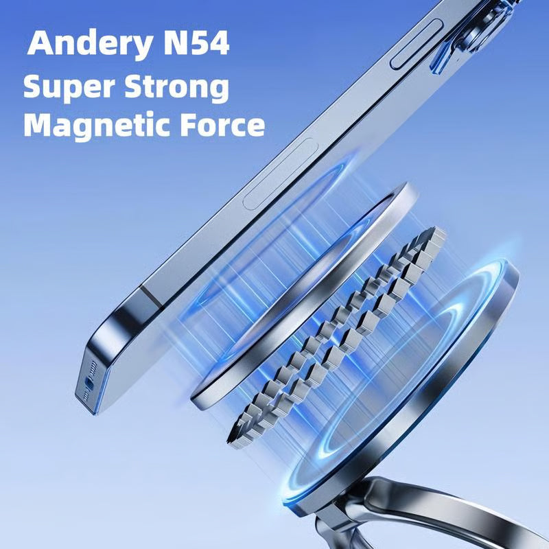 REGOLABILE A DOPPIO ASSE A 360° E 180° ā Questo supporto magnetico per telefono a ventosa ĆØ dotato di un braccio metallico pieghevole a doppio asse a forma di anello con regolazione a 180° e una base girevole a 360°, che consente di regolarlo in modo flessibile all'angolazione desiderata e di fissarlo saldamente in posizione. Test approfonditi confermano le sue eccezionali prestazioni di stabilitĆ . L'innovativo design pieghevole riduce le sue dimensioni del 50% quando non in uso, mantenendo l'area di lavoro pulita e ordinata.