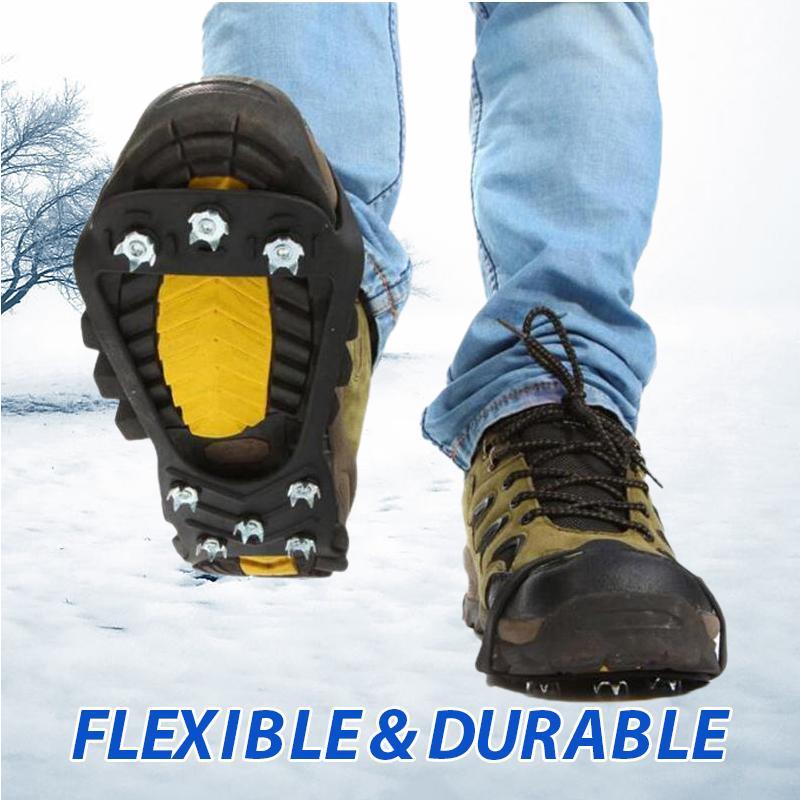 In inverno, la strada è ghiacciata e scivolosa ed è facile cadere. La protezione antiscivolo per scarpe ha otto punte sul fondo. Quando si cammina sul ghiaccio, aderisce al terreno per garantire una distribuzione uniforme del peso e prevenire lo scivolamento.