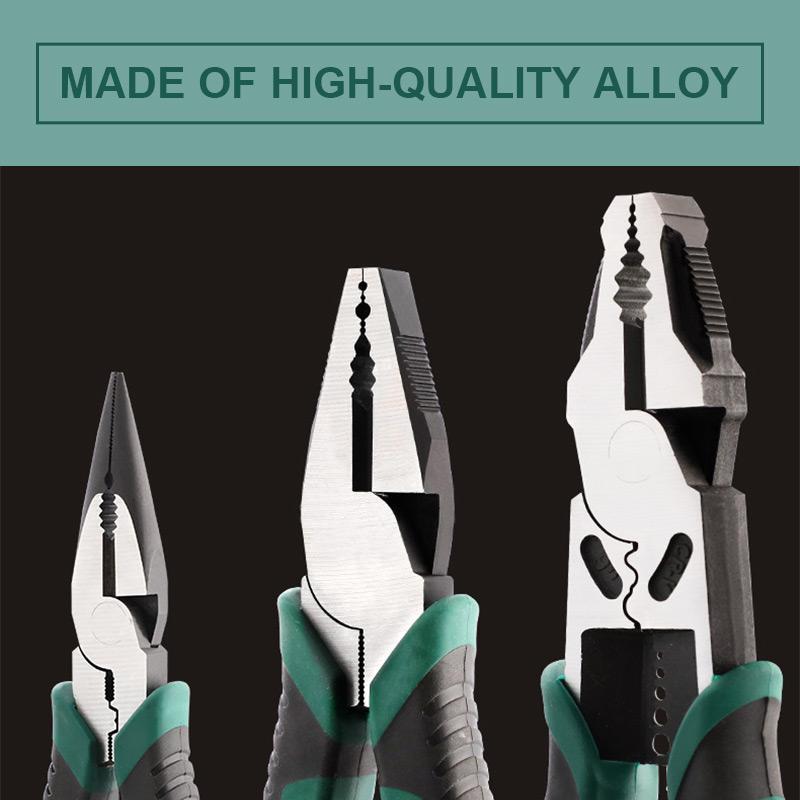 A differenza delle pinze ordinarie, queste pinze sono realizzate in lega ad alta resistenza 60CRV dopo ripetute tempere ad alta temperatura e la loro resistenza raggiunge i 60 HRC o più. I prodotti in acciaio ordinario possono essere tagliati facilmente.