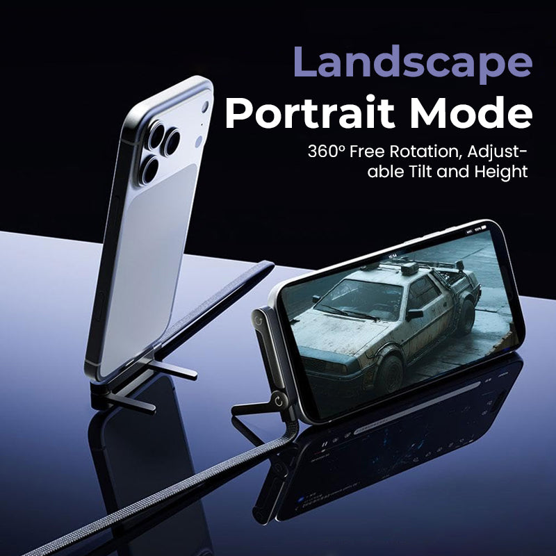 Guarda video, gioca o effettua videochiamate in vivavoce! Il supporto integrato si ripiega per facilitarne il trasporto e si apre per sostenere il telefono sia in verticale che in orizzontale.