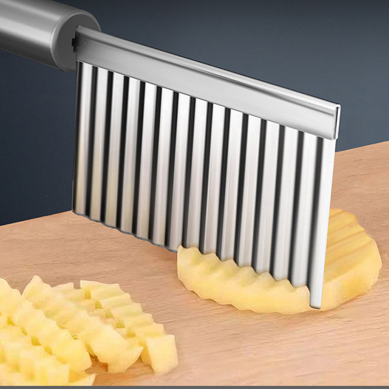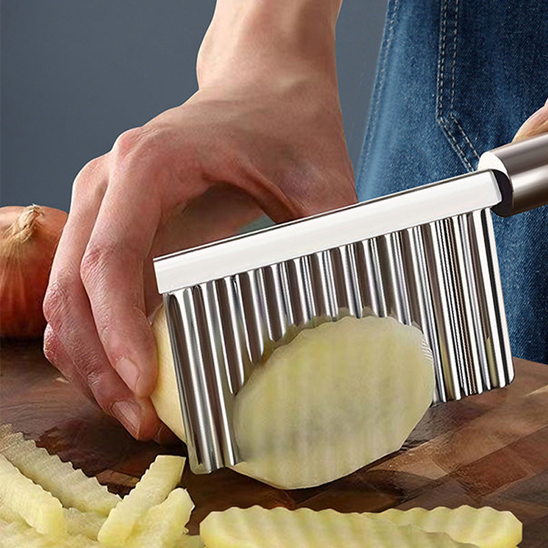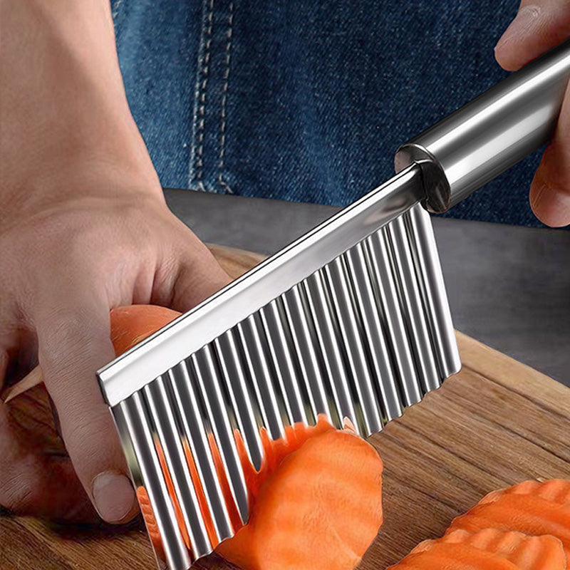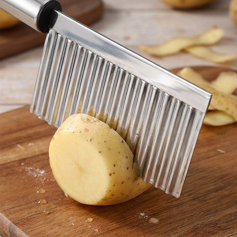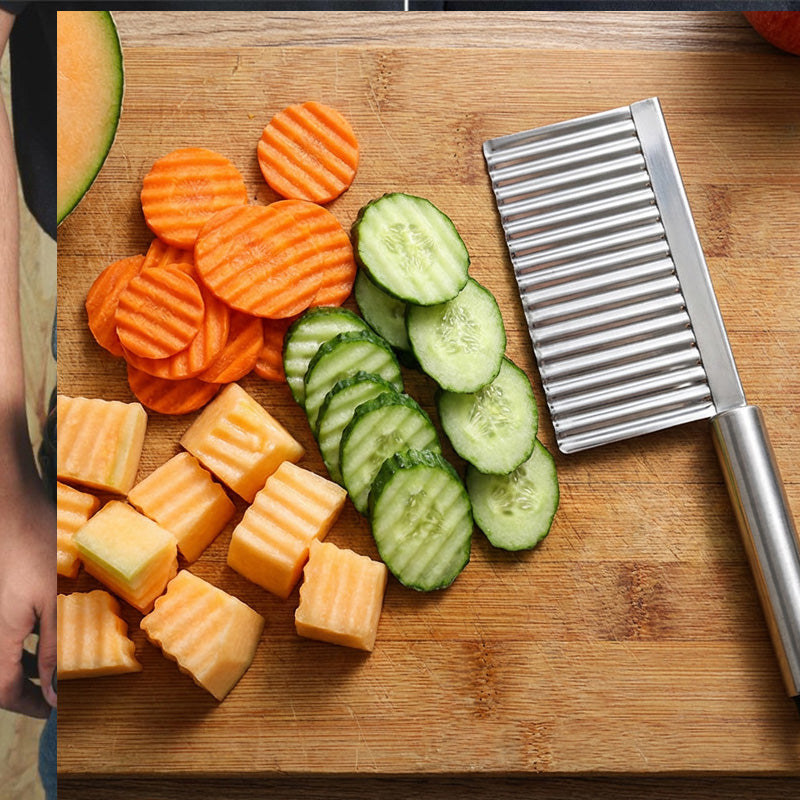 La lama affilata e corrugata è realizzata in acciaio inossidabile di alta qualità, permettendoti di creare senza sforzo tagli a onda perfetti su patate, carote e altre verdure – un risultato professionale ad ogni uso!
